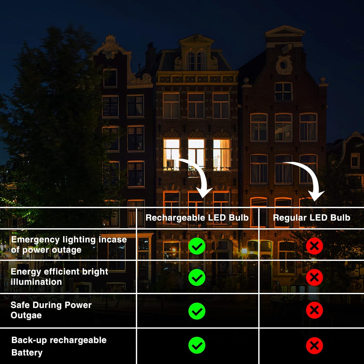 Neporal A19 Rechargeable Light Bulbs, Emergency Light Bulb 60 Watt Equiv., Self-Charging