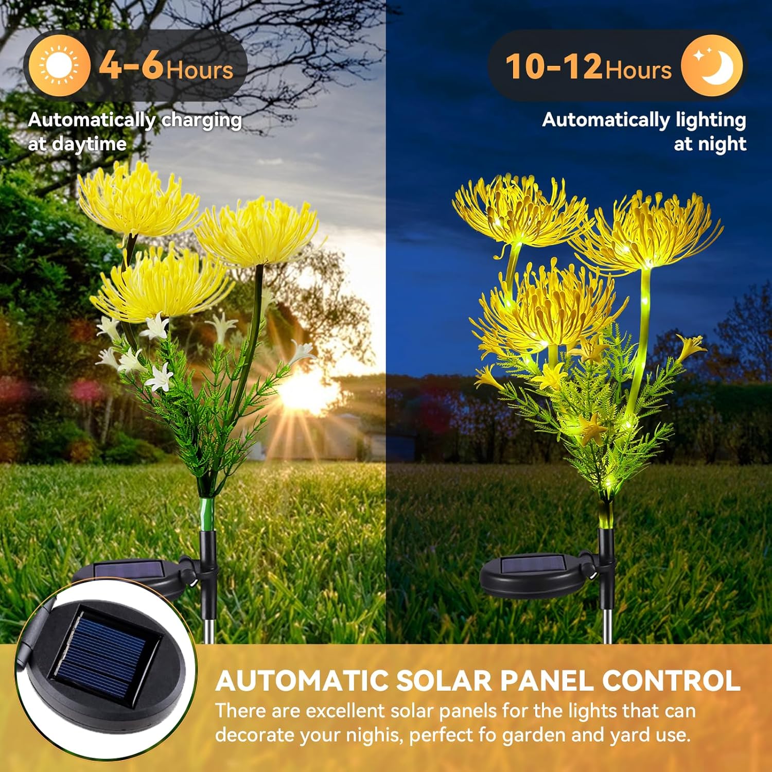 Neporal Solar Garden Lights Outdoor Decorative, 2 Pack Yellow Solar Flower Lights with Glowing Flowers & Stems