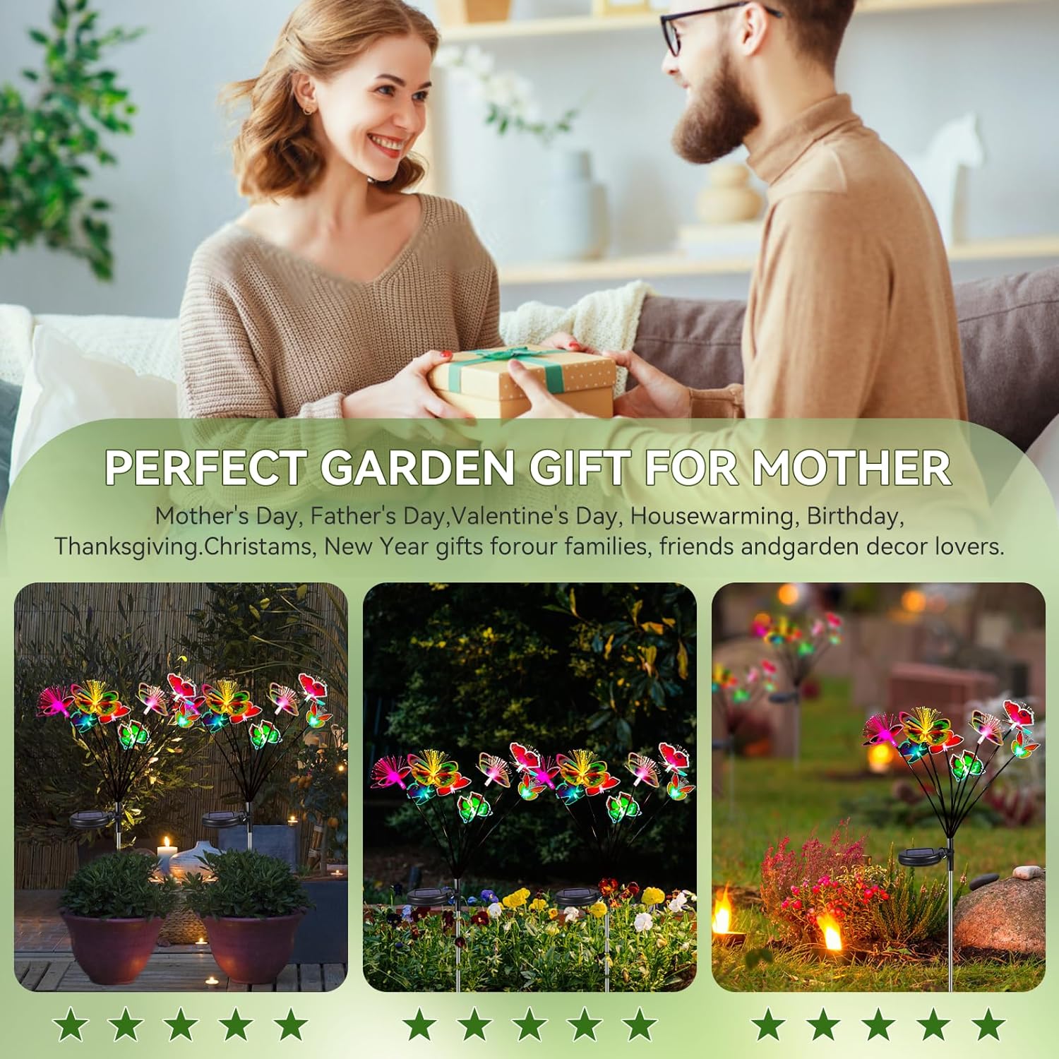 Neporal Solar Lights Outdoor Garden 2PK, Swaying Butterfly Lights + 7-Color Changing